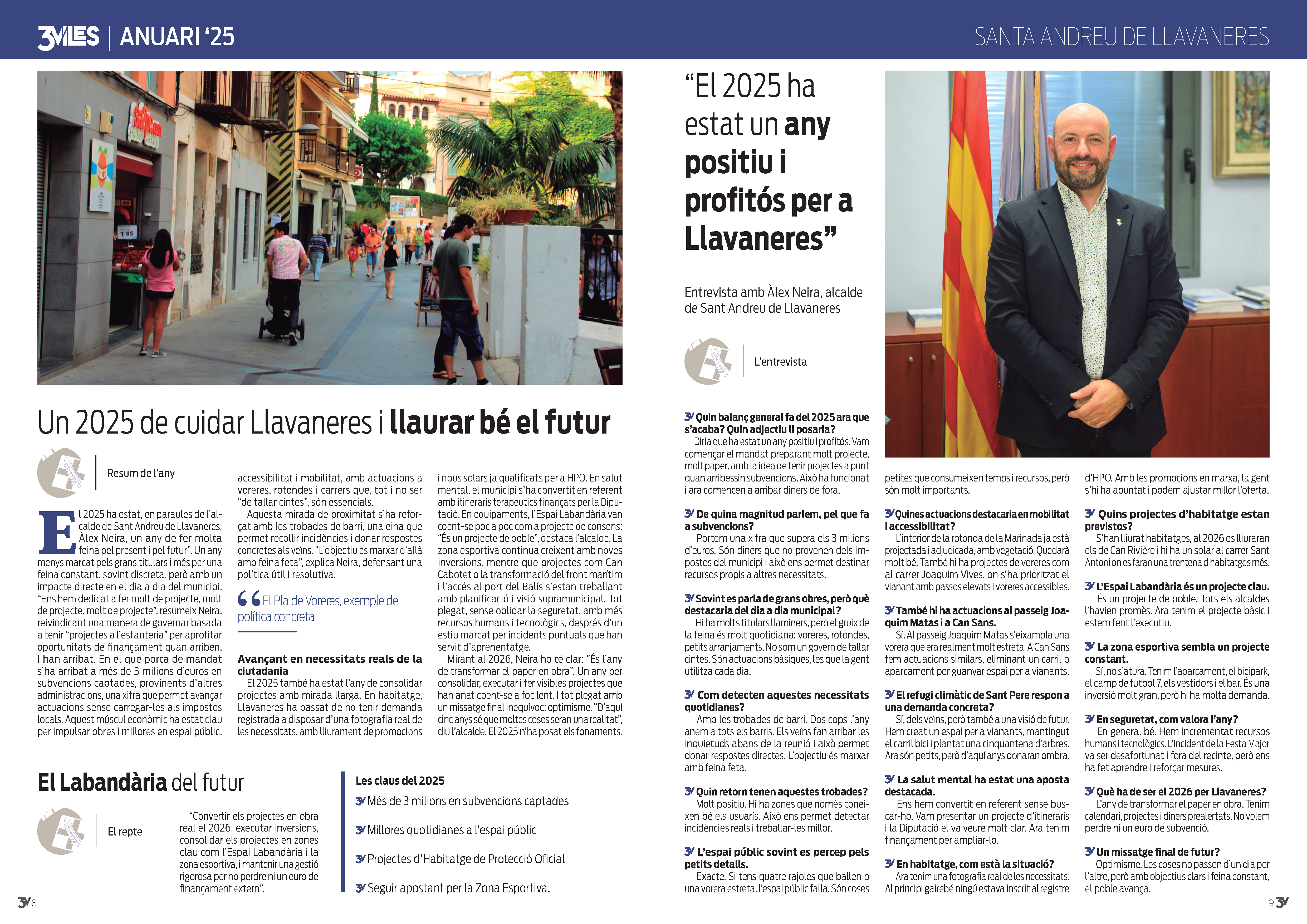 La revista 3 Viles d'aquest mes de gener de 2026 inclou un article de balanç de l'any 2025 i una entrevista a l'alcalde de Llavaneres, Àlex Neira.