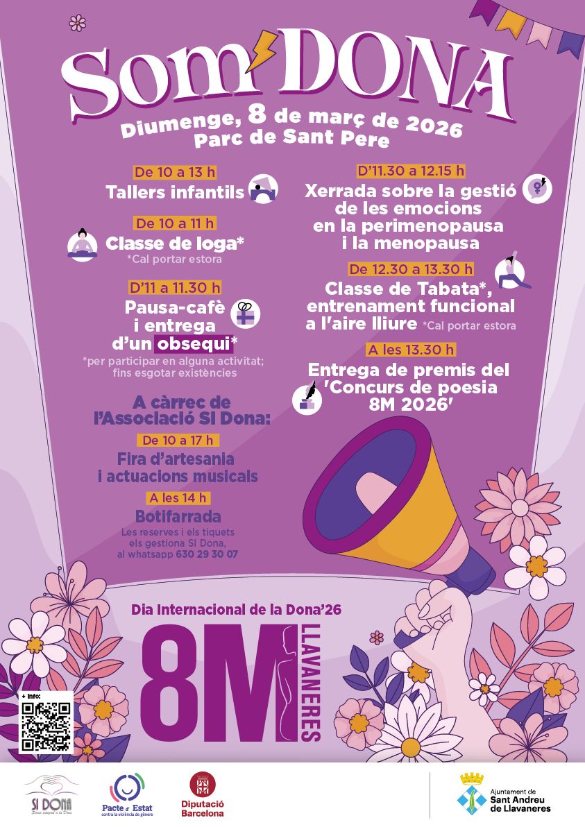 El parc de Sant Pere es convertirà en un espai de celebració i reivindicació amb activitats per a tota la ciutadania, diumenge de 10 a 17 h. Consulteu aquí la resta de propostes del 8M 2026 a Llavaneres.