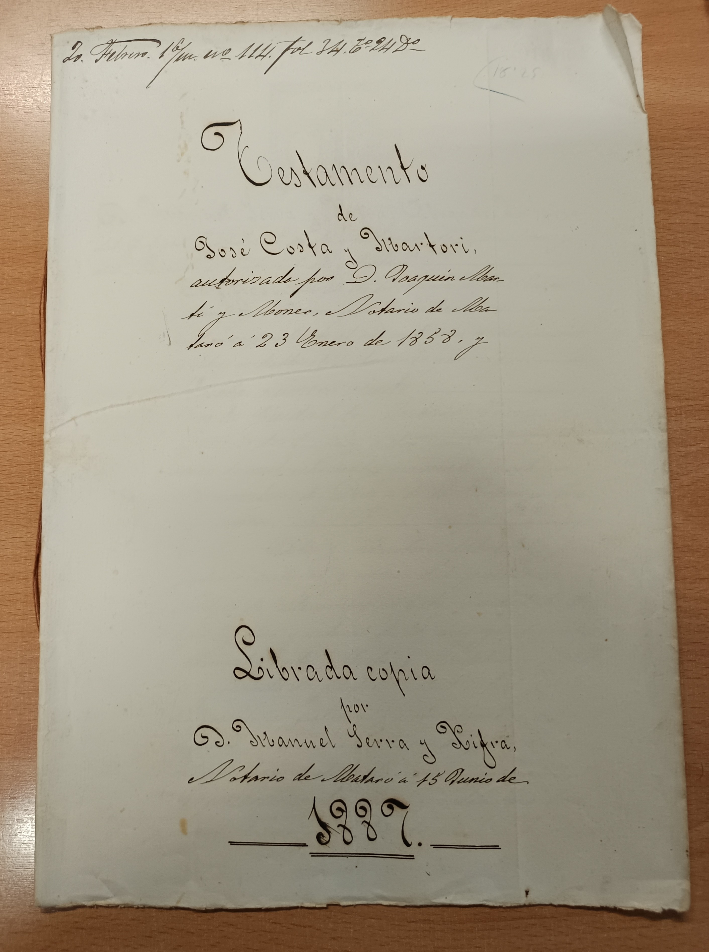 El document més antic és un pergamí de 1612, relatiu a un censal de 1.000 lliures creat pels propietaris del mas Can Costa.