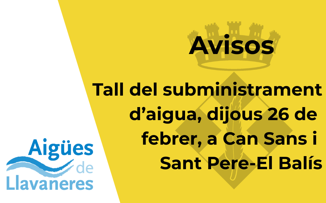 |  El tall d'aigua serà aquest dijous 26 de febrer, de 9 a 14 h