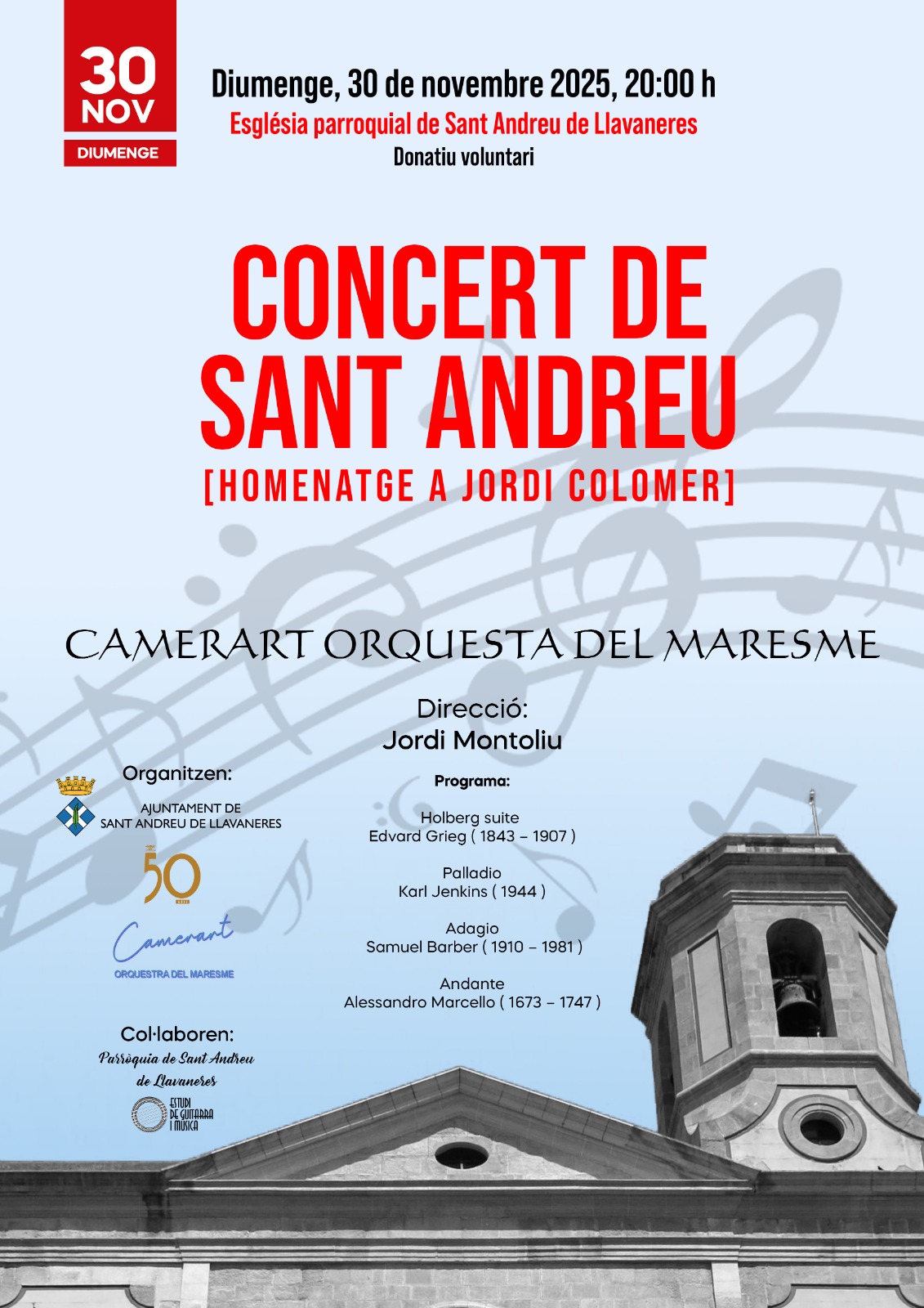 - Holberg Suite d'Edvard Grieg (1843 - 1907) - Palladio, de Karl Jenkins (1944). - Adagio, de Samuel Barber (1910-1981). - Andante, d'Alessandro Marcello (1673-1747).