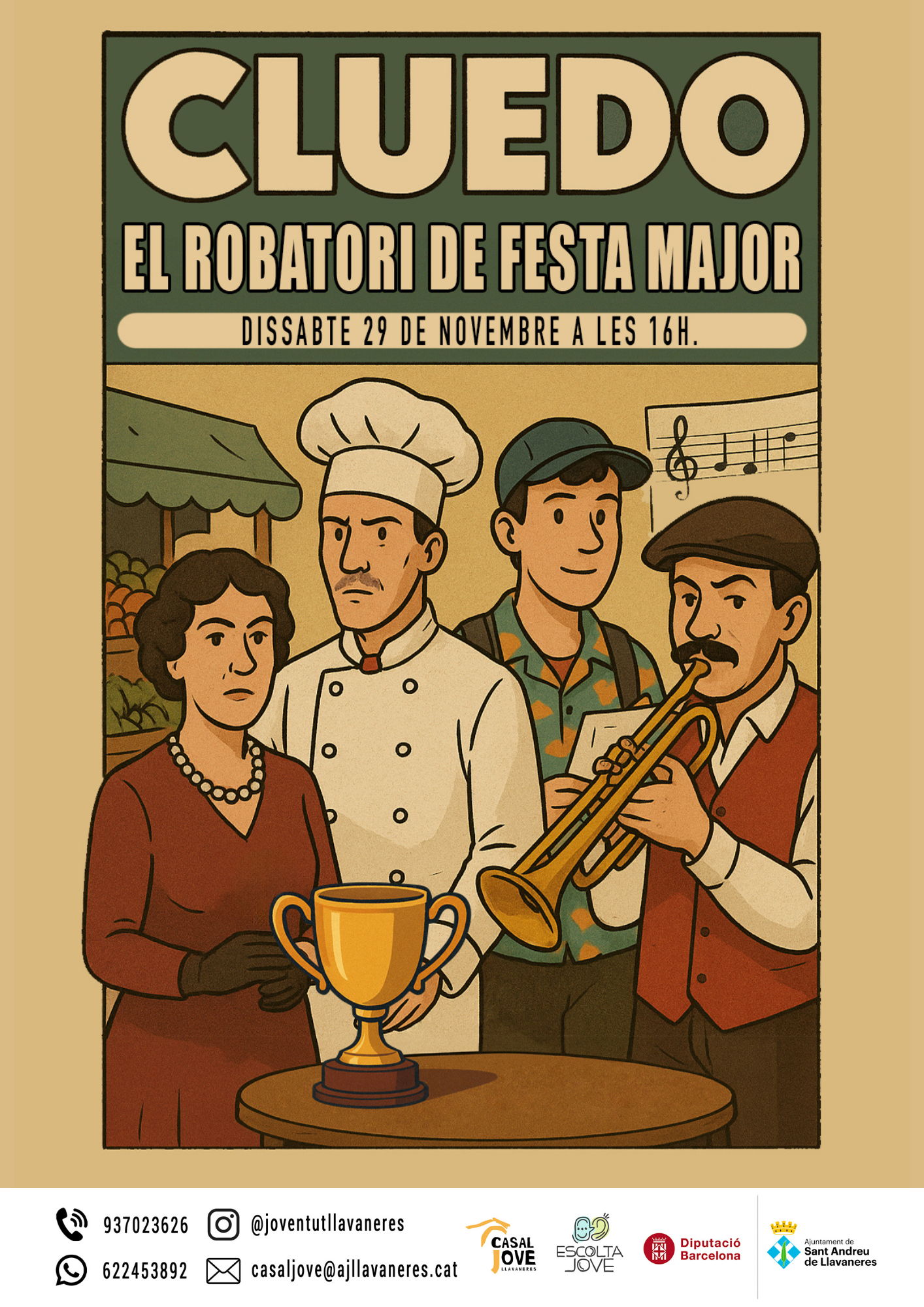 El robatori de la Festa Major és un joc d’investigació en viu on els participants, organitzats en equips, recorren el poble resolent enigmes i parlant amb personatges per descobrir qui ha robat el trofeu de la Festa Major. Una activitat divertida, col·laborativa i plena d’intriga i humor.