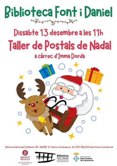 Ara ve Nadal... Un any més us convidem al tradicional Taller de postals de Nadal, a càrrec d'Imma Dorda. Dissabte 13 de desembre, a les 11 h, veniu a crear postals de Nadal originals, úniques i especials, plenes de màgia. Us oferim tots els materials i l'acompanyament necessari per despertar la vostra imaginació. Per a grans i petits! Us hi esperem!