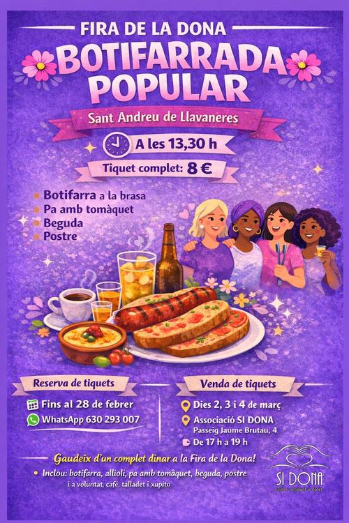 Venda de tiquets: dies 2, 3 i 4 de març, a l'associació SI Dona (passeig de Jaume Brutau, 4; al costat del CAP) de 17 a 19 h.