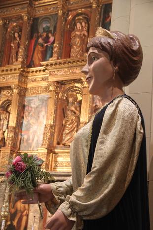 Assistčncia dels gegants a l'Ofici de Festa Major i seguidament a la processó pels carrers del centre.