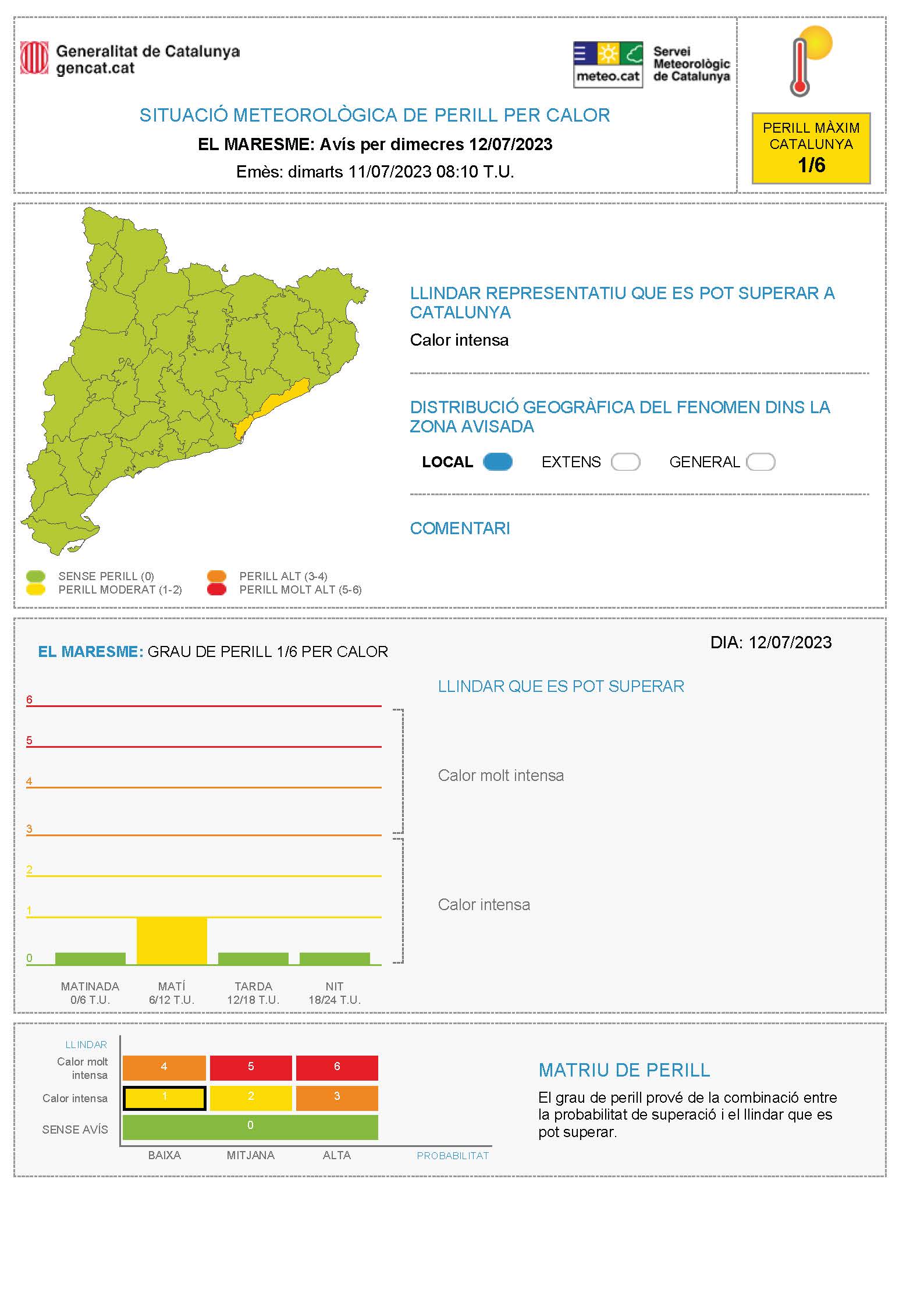Davant l'episodi de calor intensa, Protecció Civil aconsella hidratar-se sovint i evitar el carrer en les hores de màxima insolació. La hidratació ha de ser especialment freqüent en els col·lectius més vulnerables, com persones amb malalties cròniques, mainada i gent gran, encara que no tinguin sensació de set. Trobareu més consells d'autoprotecció en aquest enllaç.