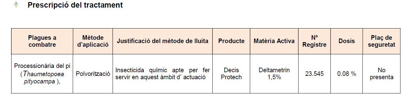 Tractament fitosanitari contra la processionària dels pins