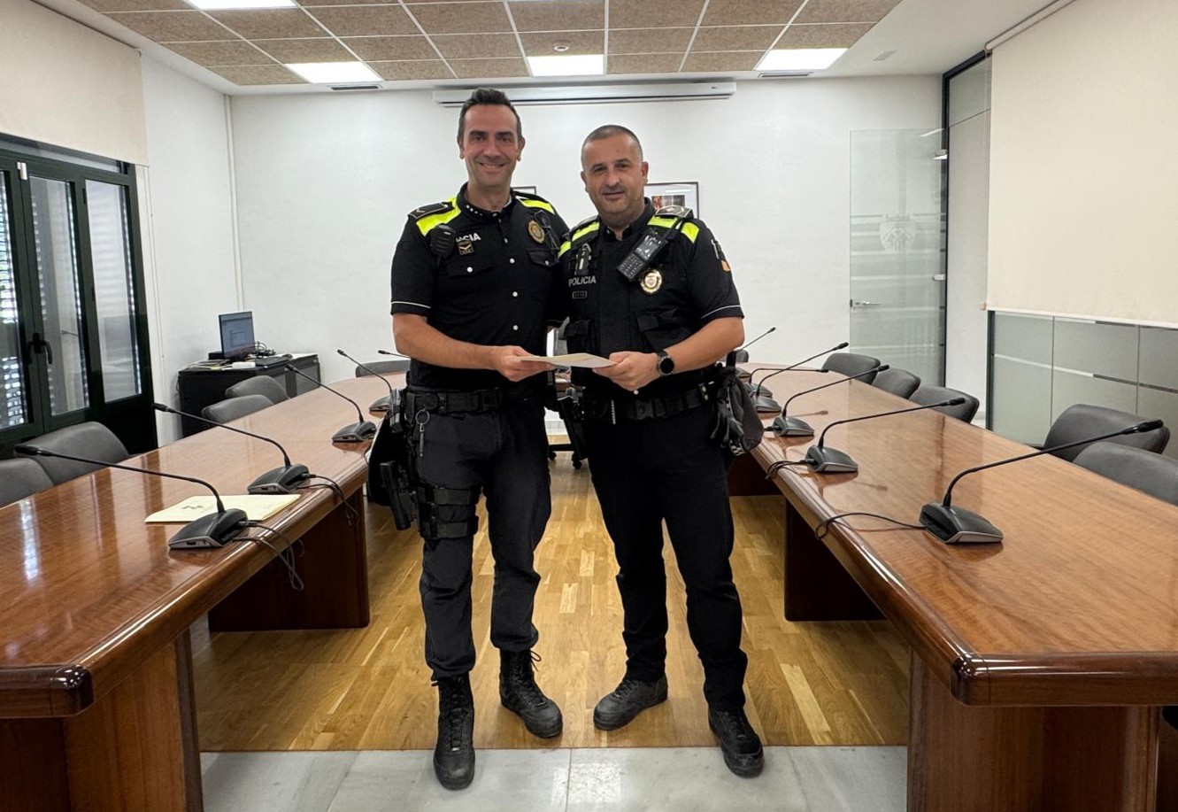 El subcap de la Policia de Llavaneres, Joan Moreno, amb el cap de la Policia Local de Sant Vicenç, Francisco Sánchez Lara.