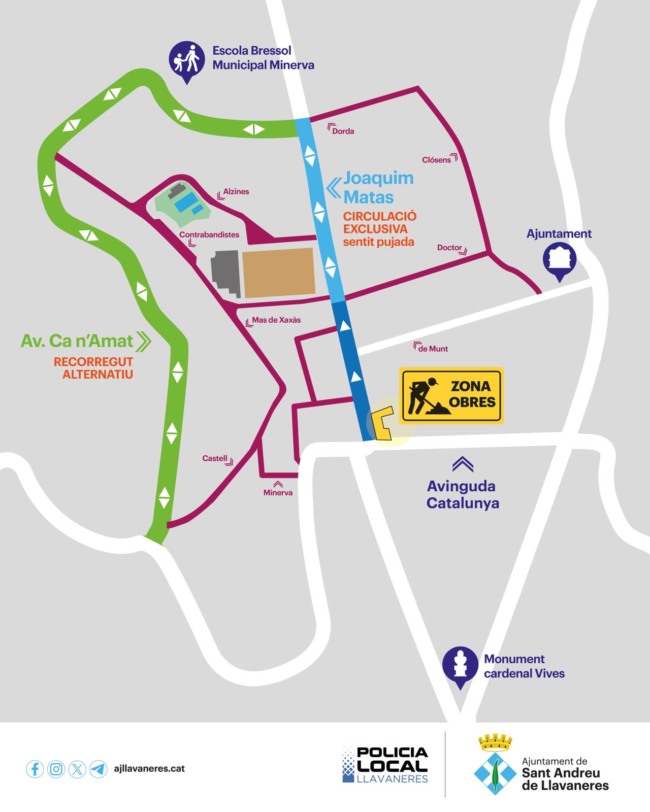 Entre l'avinguda de Catalunya i el carrer del Doctor, el passeig de Joquim Matas serà exclusivament de pujada, mentre durin les obres. S'hi habilitarà un espai de càrrega i descàrrega.