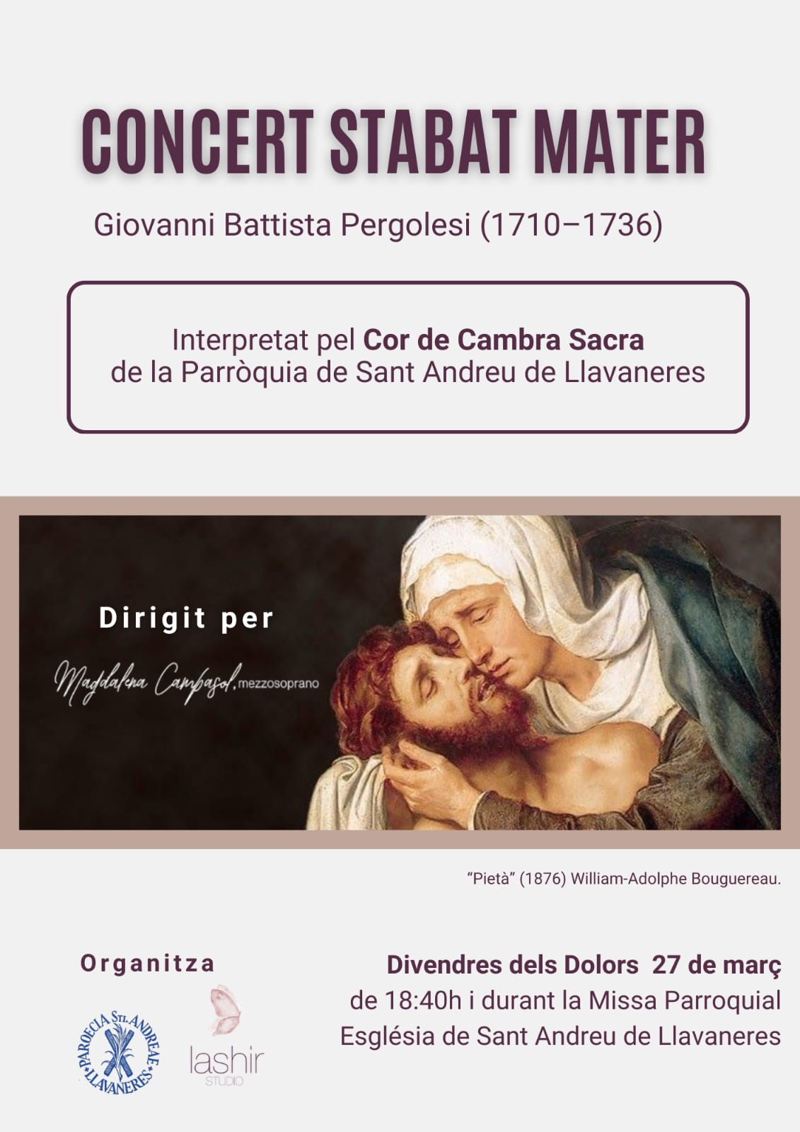 A càrrec del Cor Cambra Sacra de la Parròquia de Sant Andreu de Llavaneres, amb la direcció de la mezzosoprano Magdalena Campasol