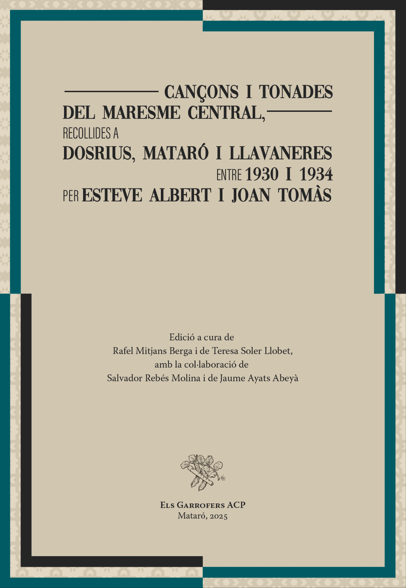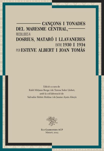 Entre 1930 i 1934, Esteve Albert i Joan Tomàs van visitar Dosrius, Mataró, els Vilassars i Llavaneres per anotar cançons per a l’Obra del Cançoner Popular de Catalunya. El llibre que ara es presenta recull les 364 tonades, ordenades i reestructurades per facilitar-ne la consulta.